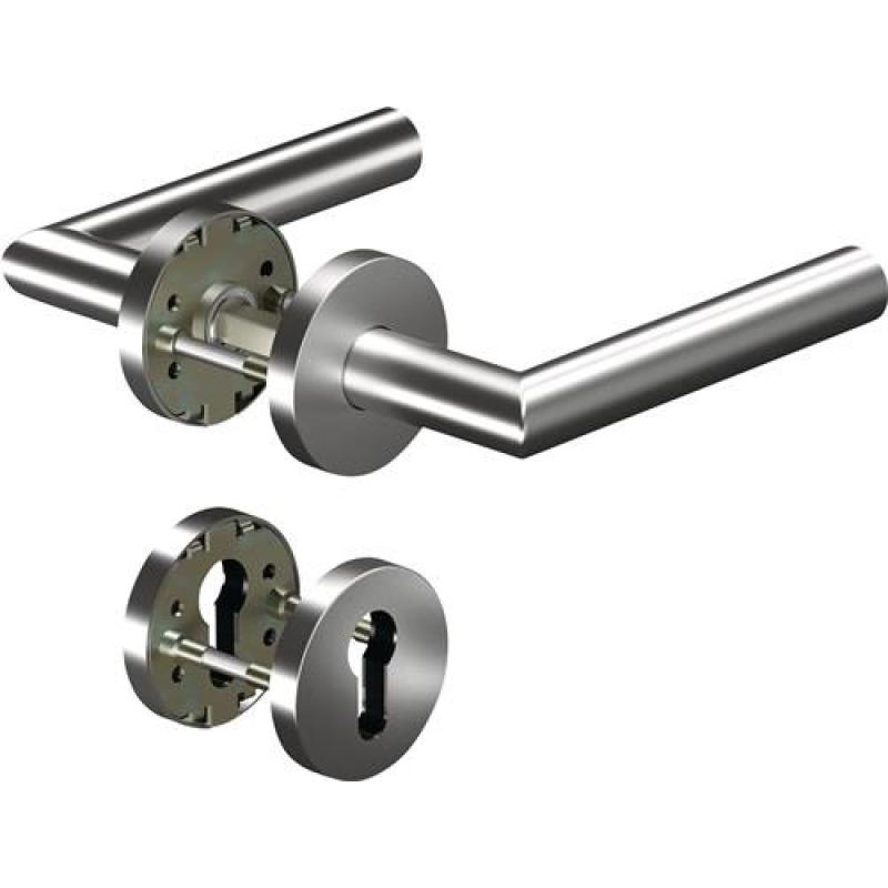 DIN links / rechts · Vierkant 8 mm · Drückergarnitur = beidseitig Drücker 8906 / Wechselgarnitur = außen Knopf 3020 / innen Drücker 8906 · für Türstärke 38-63 mm / WC = 37-42 mm · geprüft nach DIN EN 1906 (Gebrauchs-Kategorie Klasse 4) Demontagemöglichkeit der Drückerlochteile bei Verwendung einer handelsüblichen Sicherungsringzange. Optimale Montage durch M5 TORX-Schrauben · Hochhaltefedern einseitig (Durchgangsseite) Lieferung als Komplettgarnitur
