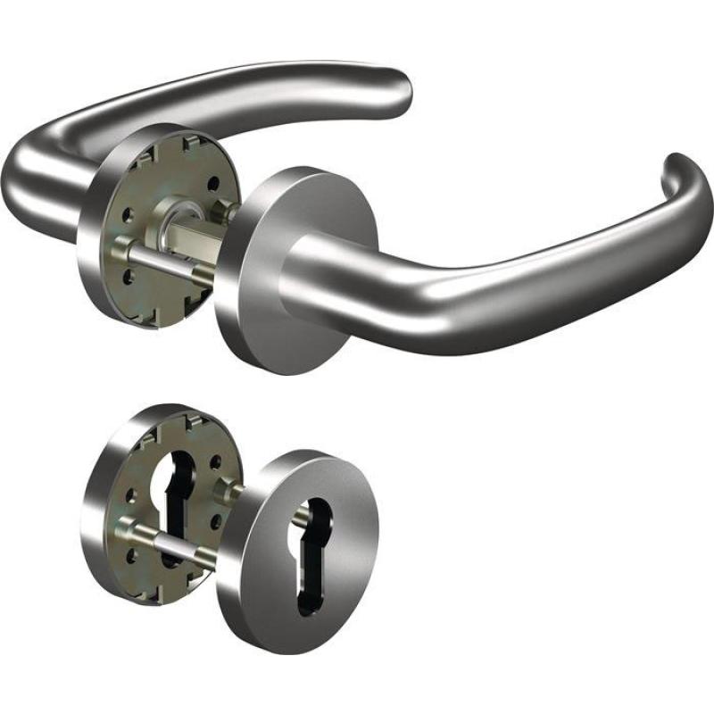DIN links / rechts · Vierkant 8 mm · Drückergarnitur = beidseitig Drücker 8999 / Wechselgarnitur = außen Knopf 3020 / innen Drücker 8999 · für Türstärke 38-63 mm / WC = 37-42 mm · geprüft nach DIN EN 1906 (Gebrauchs-Kategorie Klasse 4) Demontagemöglichkeit der Drückerlochteile bei Verwendung einer handelsüblichen Sicherungsringzange. Optimale Montage durch M5 TORX-Schrauben · Hochhaltefedern einseitig (Durchgangsseite) Lieferung als Komplettgarnitur