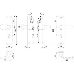 · Breite: 54mm · Länge: 250mm · Abdeckung: ohne Zylinderabdeckung · Schildstärke: 12 mm · Ergänzung: abgesetzter Vierkant · Schutzgarnitur Tôkyô · 76G/3331/3410/1710 Alu.F1 · 92mm 66-71mm HOPPE ·