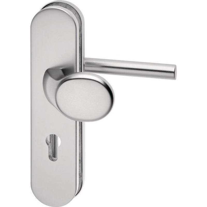 Grundkonstruktion: Druckguss mit 2 mm Teilstahleinlage im Außenschild, oberflächengehärtet · Stärke Innenschild = 8 mm · Drücker-Lagerung: lose · Drückertyp und -stärke: 108 mit Ø 22 mm · Knopfausführung bei Wechselgarnitur: Modell …/0272 und …/0292 = K2 (gekröpft), bzw. Modell …/0772 und …/0792 = K7 (gerade) · Stütznocken: M6, Ø 10 mm anbohrgeschützt · Verschraubung: 3-fach M6, verdeckt · Anbohrschutz beim Außenschild · Wechselgarnituren mit Spezialrollenwechselstift mit M12-Gewinde · DIN links / rechts · ohne Zylinderabdeckung · Widerstandsklasse ES1